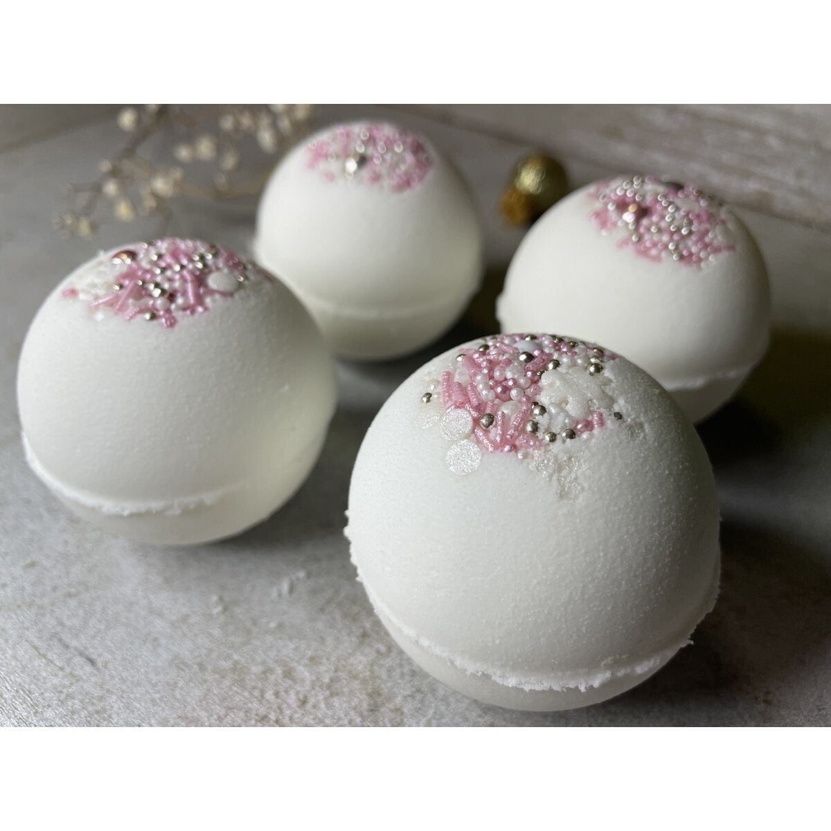 Kerstbadbal *roze magisch uur* Badbal met oranje/kaneelschuim